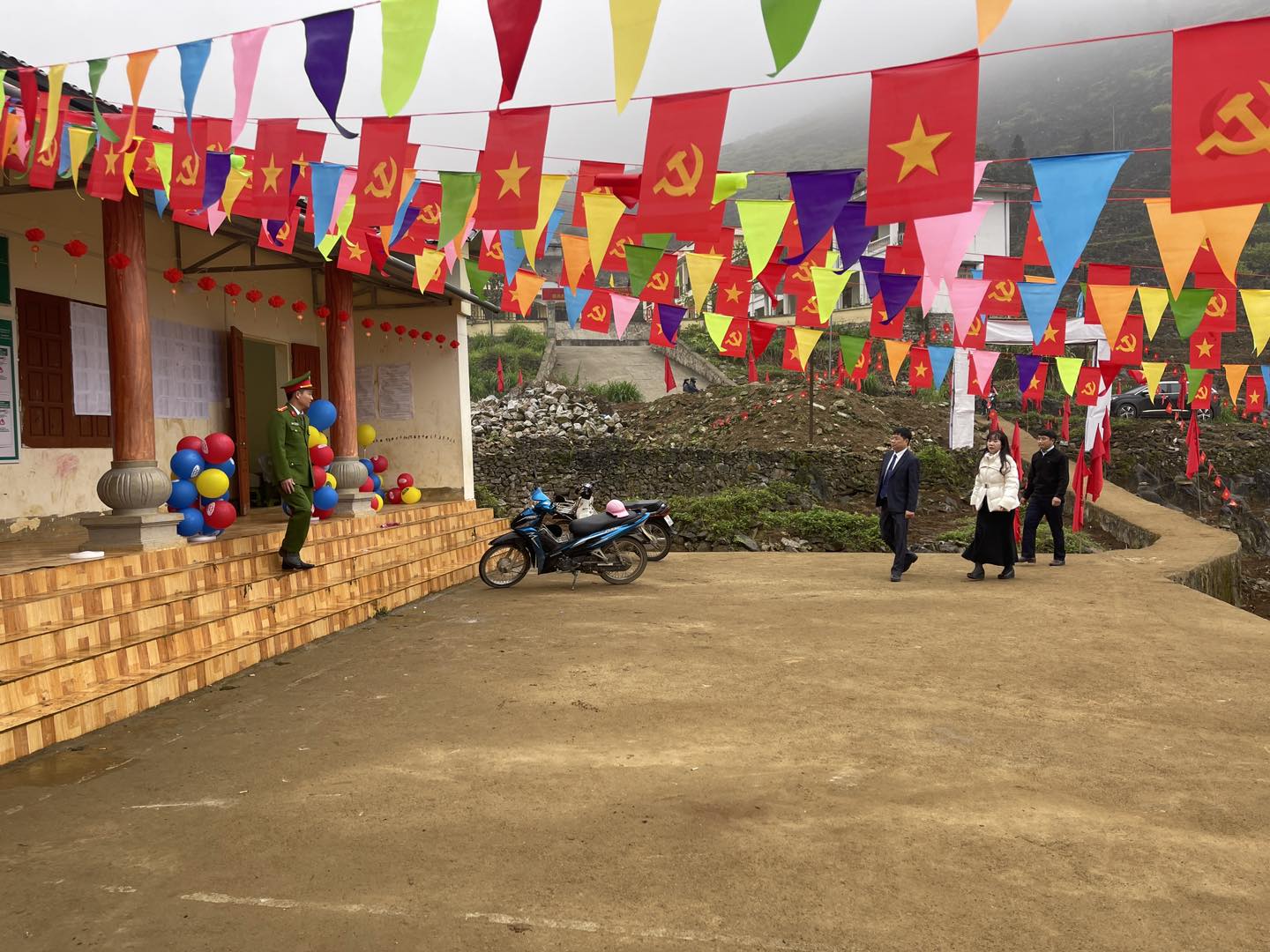 Lực lượng an ninh xã Lũng Phìn đảm bảo an ninh trật tự trong Ngày bầu cử