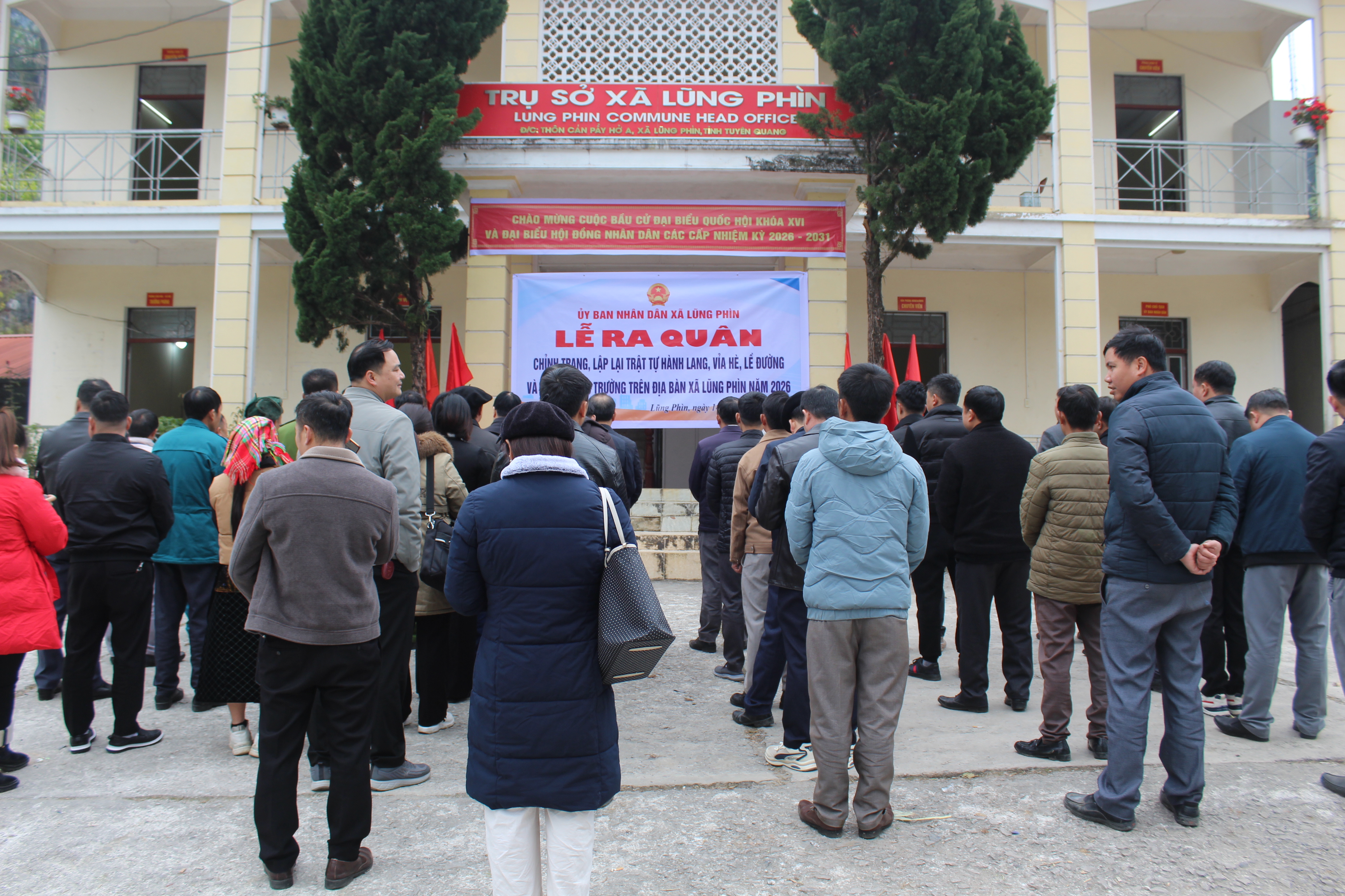 TTTĐT - Sáng ngày 12/12/2025, Công an xã Lũng Phìn tổ chức Lễ phát động mở đợt cao điểm tấn công, trấn áp tội phạm, bảo đảm an ninh, trật tự nhằm phục vụ công tác bảo vệ Đại hội đại biểu toàn quốc lần thứ XIV của Đảng, bầu cử đại biểu Quốc hội khóa XVI, HĐND các cấp nhiệm kỳ 2026 - 2031 và Tết Nguyên đán Bính Ngọ năm 2026.