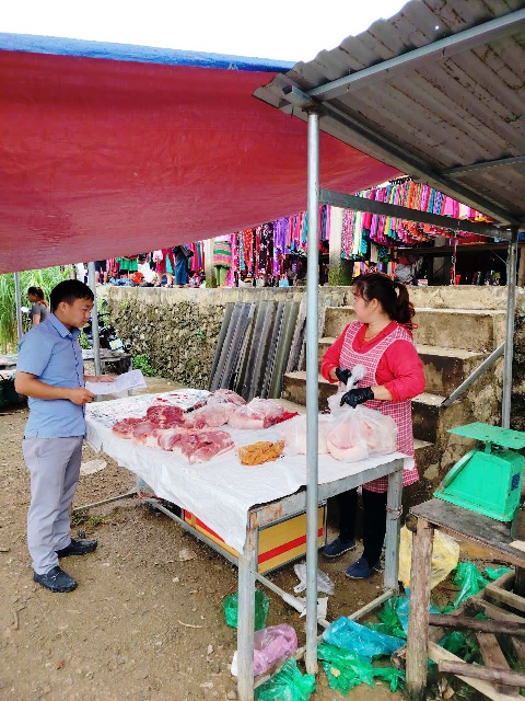 XÃ LŨNG PHÌN KIÊN QUYẾT XỬ LÝ THỊT LỢN KHÔNG RÕ NGUỒN GỐC TẠI CÁC CHỢ PHIÊN