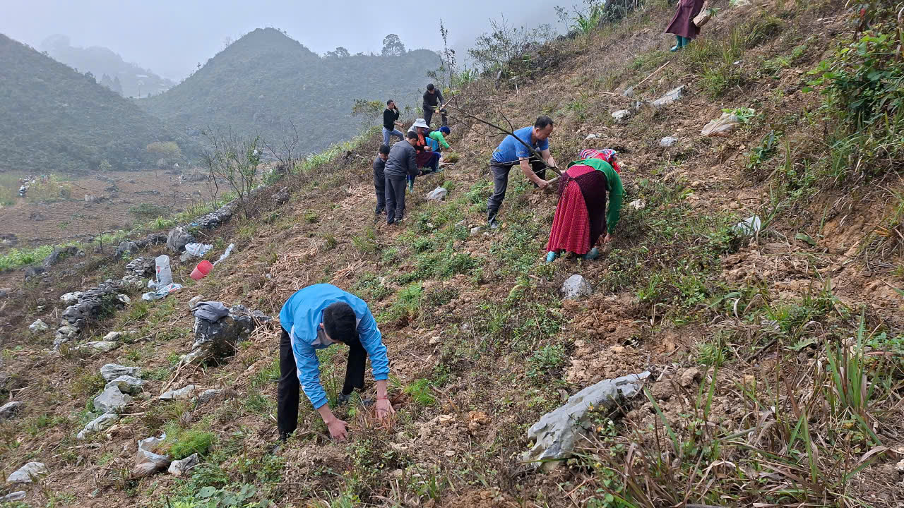 Đảng ủy xã Lũng Phìn tham gia trồng cây Mận Hậu, góp phần phát triển kinh tế và tạo cảnh quan môi trường