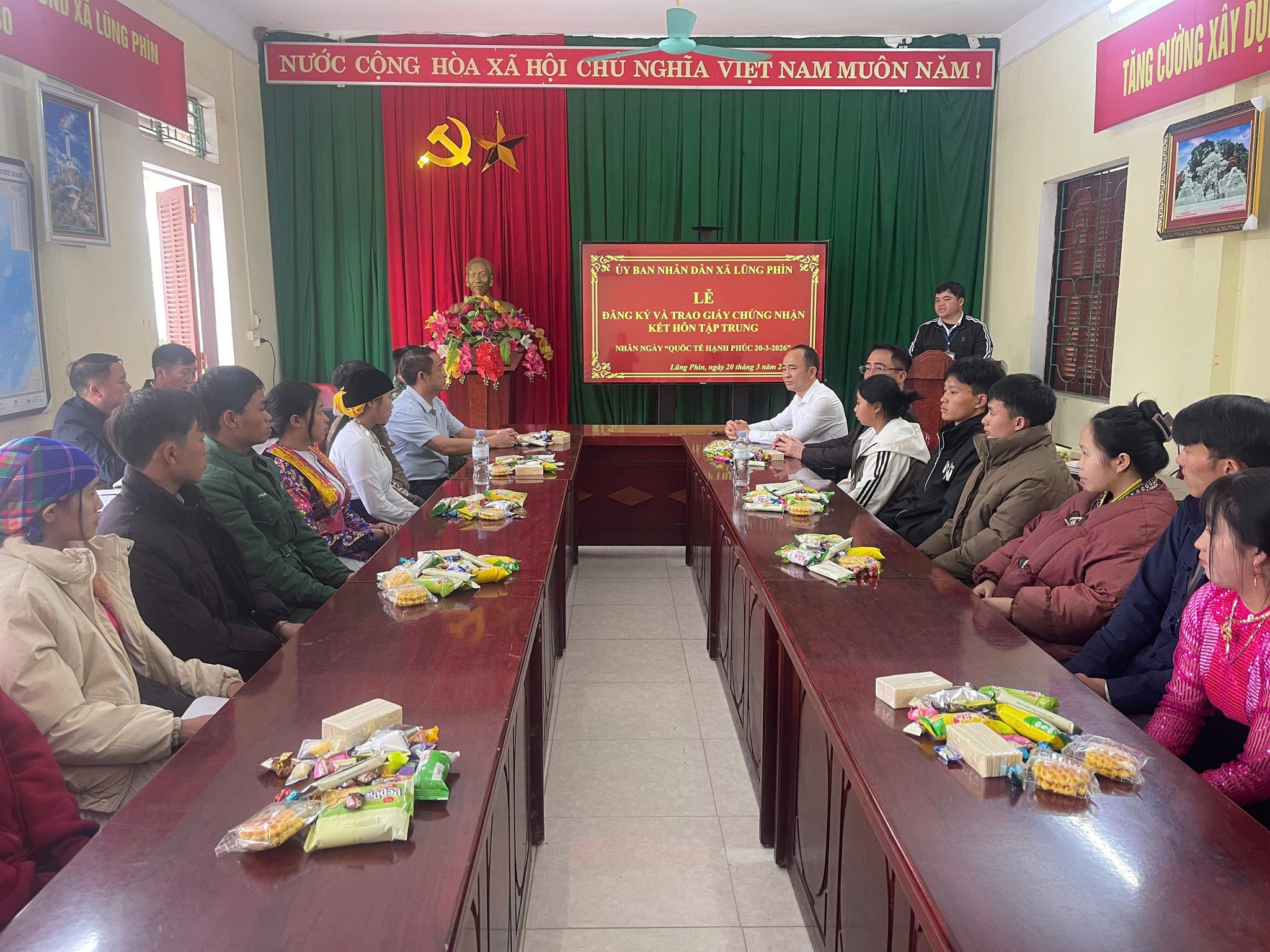 UBND xã Lũng Phìn tổ chức Lễ đăng ký và trao Giấy chứng nhận kết hôn tập trung nhân Ngày Quốc tế Hạnh phúc 20/3