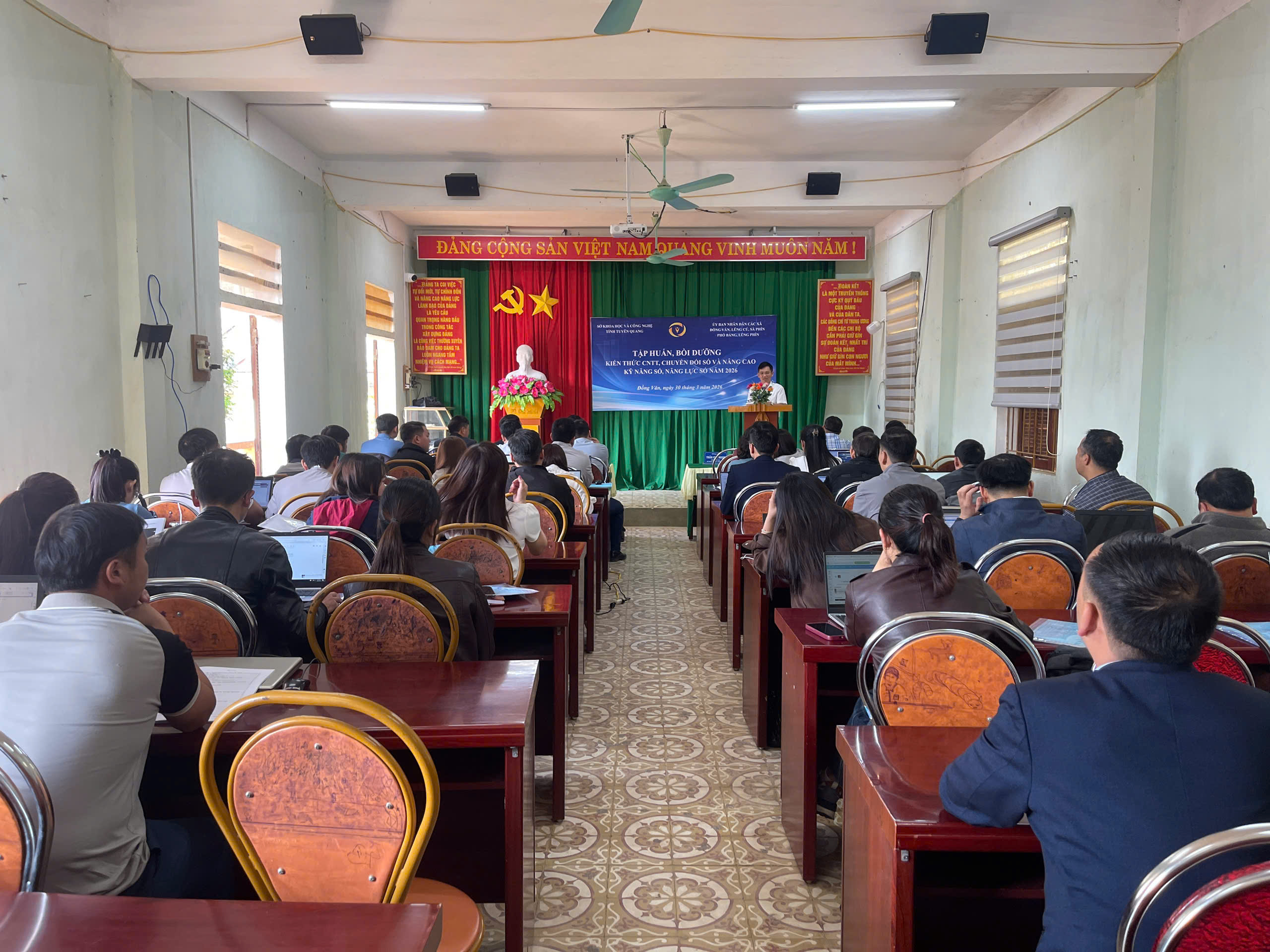 TTĐT - Ngày 30/3, Sở KH&CN tỉnh Tuyên Quang đã tổ chức Lớp tập huấn, bồi dưỡng kiến thức CNTT, chuyển đổi số và nâng cao kỹ năng số, năng lực số năm 2026. Dự lớp tập huấn có Đồng chí Trần Kim Ngọc – Phó giám đốc Sở KH&CN tỉnh; các đồng chí lãnh đạo xã Đồng Văn, Lũng Cú, Sà Phìn, Phố Bảng, Lũng Phìn; cùng đông đủ các học viên là cán bộ trực tiếp thực hiện công tác chuyển đổi số và công nghệ thông tin tại các xã trên địa bàn.