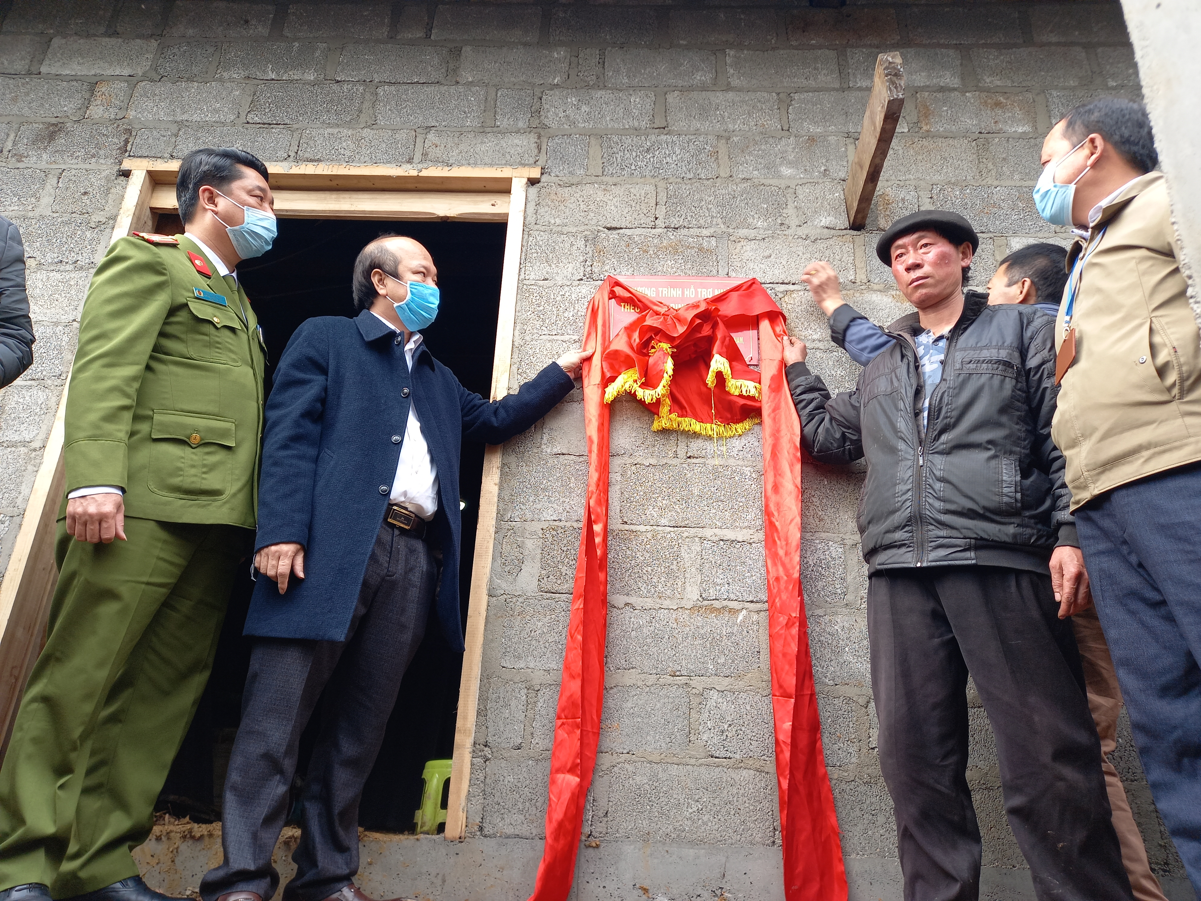 Sau khi kết thúc buổi Lễ công bố Quyết định của Ban tổ chức huyện ủy đồng chí Hoàng Văn Thịnh và các đồng chí trong đoàn đã đi trao tạm nhà cho hộ gia đình ông Giàng Nhìa Súng thôn Mao Sao Phìn, xã Lũng Phìn.