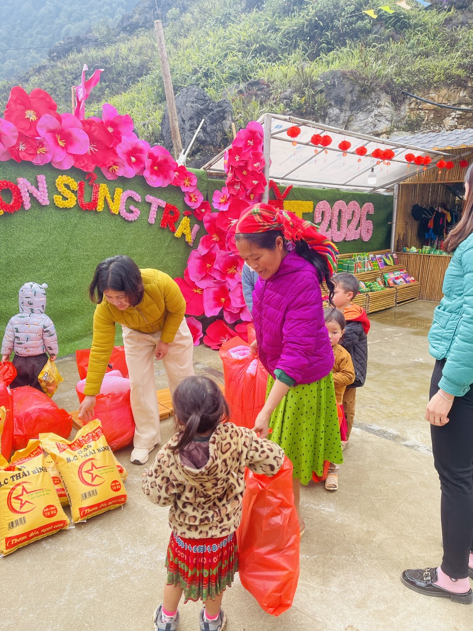 Chương trình được tổ chức trong không khí ấm áp, ý nghĩa với sự tham gia của Ban Giám hiệu nhà trường, đội ngũ cán bộ, giáo viên cùng đông đảo phụ huynh và các em học sinh. Tại đây, Đồng chí Hoàng Thị Thắng – Hiệu trưởng Trường Mầm non Sủng Trái đã trao tặng 15 suất quà Tết thiết thực gồm gạo, chăn ấm, bánh kẹo, nhu yếu phẩm và các phần quà hỗ trợ nhằm động viên tinh thần, giúp các em đón Tết thêm vui tươi, đủ đầy.