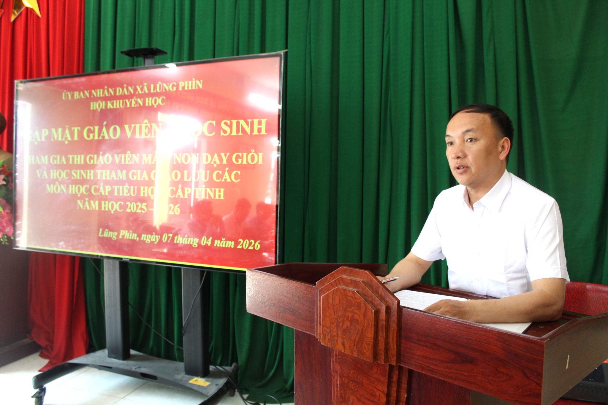 Phát biểu động viên, thay mặt các đồng chí lãnh đạo xã, đồng chí Giàng Mí Và – Phó Chủ tịch UBND xã đã ghi nhận và biểu dương sự nỗ lực của đội ngũ giáo viên và các em học sinh; đồng thời nhấn mạnh, việc tham gia các kỳ thi, giao lưu cấp tỉnh không chỉ là cơ hội để thể hiện năng lực, mà còn là dịp để học hỏi, trao đổi kinh nghiệm, góp phần nâng cao chất lượng dạy và học của địa phương. Lãnh đạo xã mong muốn các thầy cô giáo phát huy tinh thần trách nhiệm, sáng tạo trong quá trình dự thi; các em học sinh bình tĩnh, tự tin, phát huy hết khả năng của mình, chấp hành tốt quy chế, mang về thành tích cao, góp phần khẳng định chất lượng giáo dục của xã Lũng Phìn.Nhân dịp này, xã đã trao những phần quà ý nghĩa nhằm động viên tinh thần cho các giáo viên và học sinh trước khi lên đường tham gia các kỳ thi, giao lưu cấp tỉnh.