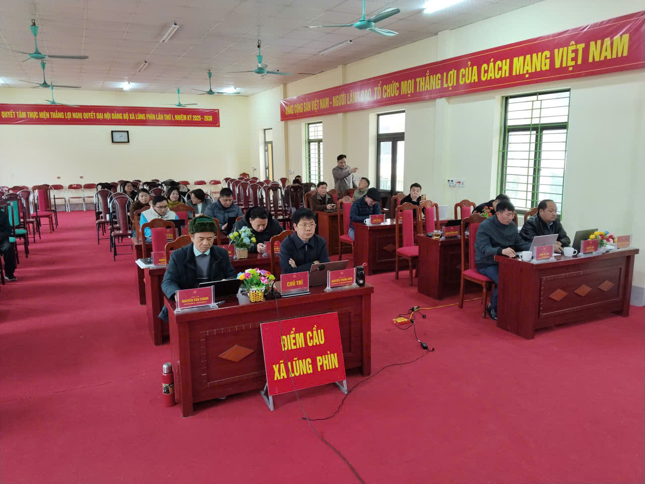 Về phía điểm cầu xã Lũng Phìn có sự tham dự của đồng chí Nguyễn Trung Kiên – Bí thư Đảng ủy, Chủ tịch HĐND xã; đồng chí Nguyễn Thanh Viễn – Phó Bí thư Thường trực Đảng ủy; đồng chí Nguyễn Văn Chinh – PBT, Chủ tịch UBND xã; các đồng chí lãnh đạo TT Đảng ủy; HĐND, UBND, UB MTTQ Việt Nam xã; các cơ quan, ban, ngành, đoàn thể, LLVT, cùng cán bộ, công chức; bí thư các chi bộ trực thuộc trên địa bàn xã.